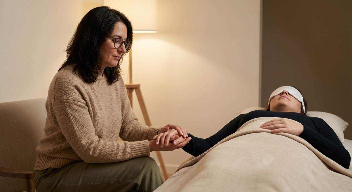 You can open your eyes or speak at any point if you need to.Experiences can vary — sometimes calm, sometimes emotionally or psychologically intense. Your role isn’t to achieve anything in particular, but to stay present with what arises, at your own pace.The facilitator remains nearby throughout.